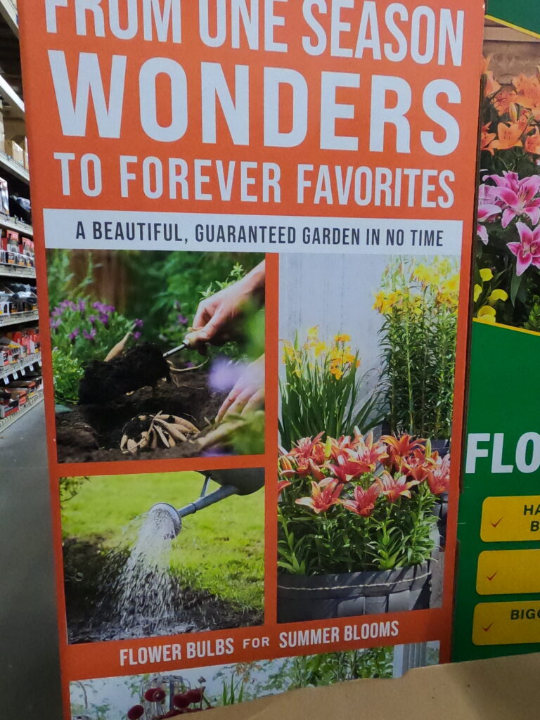 Hôm nay, sực nhớ lại, có từng nghe Ba nói hay mấy bà già Mỹ trắng đi Home Depot năm xưa nói hay gì đó, là hột giống mua năm này để năm sau gieo hay gieo trẹo mùa, nó không lên hay gì đó, hay là mình nghe mấy đứa làm ở Home Depot hồi xưa nói hay gì đó, lâu rồi không nhớ nữa. Ồ, tụi nó không có nói là hột giống không lên, mà tụi nó nói, hết mùa, họ không có trưng bày đó, mà để qua góc bên…