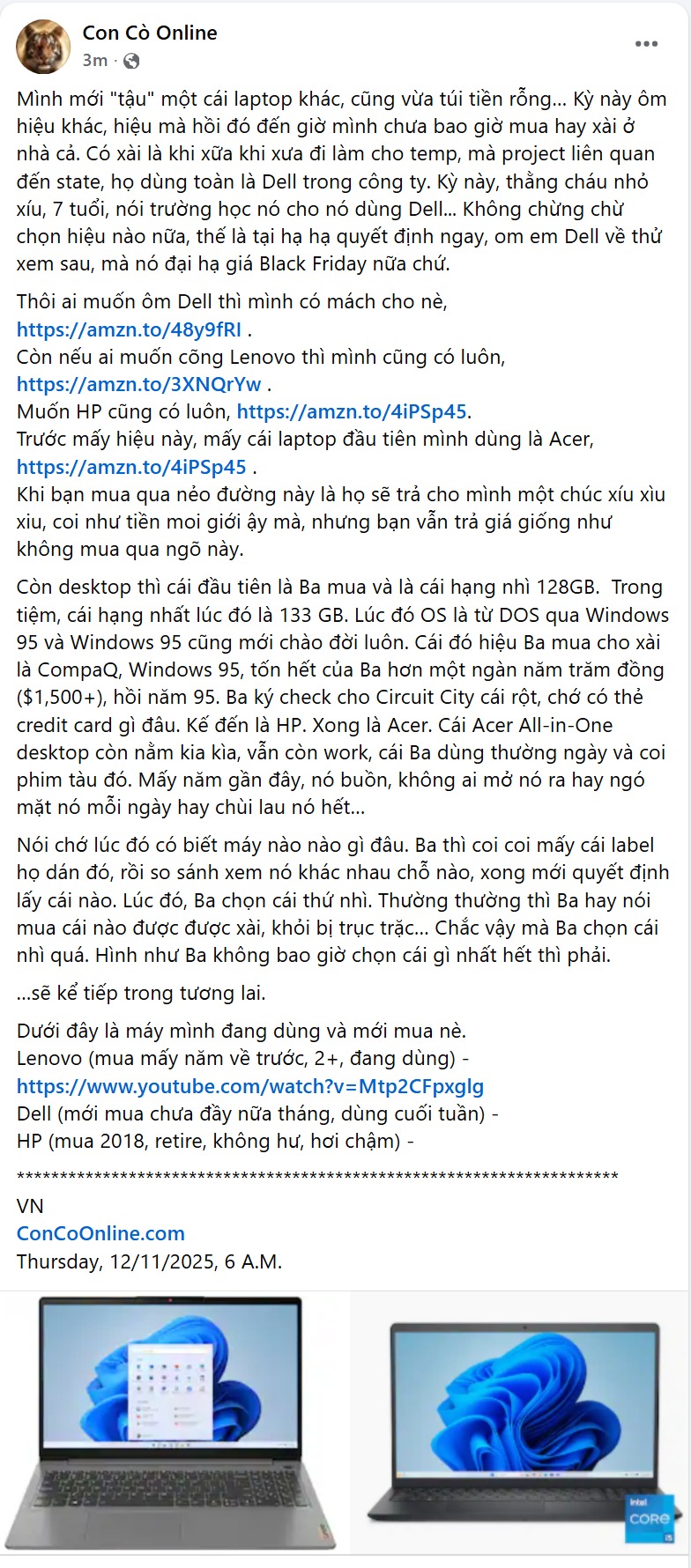 Trước mấy hiệu này, mấy cái laptop đầu tiên mình dùng là Acer, https://amzn.to/4iPSp45 .