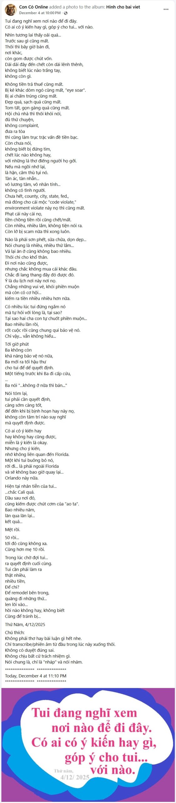 nhưng cho ý kiến, nhớ không liên quan đến Florida nhe.