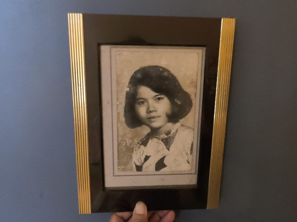 Khi qua Mỹ, không được mấy ngày, mẹ bịnh… Một năm sau, đến khi mẹ mất, không có tấm hình nào để làm đám, ba lấy tấm hình này và kèm theo tấm hình rất nhỏ mới chụp nhất (hình apply thẻ xanh) để cạnh bên. Sau này vẫn thờ hình này, ba nói vì tấm hình này đã làm lễ (đám ma) cho nên không có thay đổi, mặc dầu sau đó có rửa (phóng lớn) ra tấm hình khác nhưng vẫn thờ tấm này và tấm hình nhỏ cạnh. Hôm nay, tui cả gan, lấy qua bên chụp và đem lên đây đó.