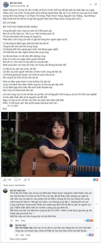 BÀI THƠ CHO PHẠM ĐOAN TRANG