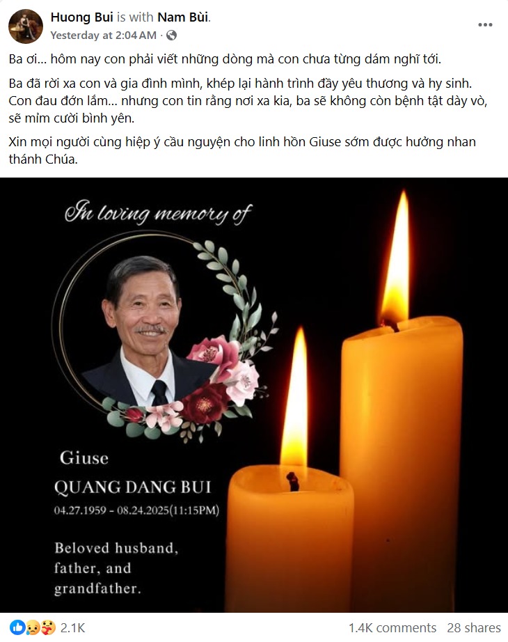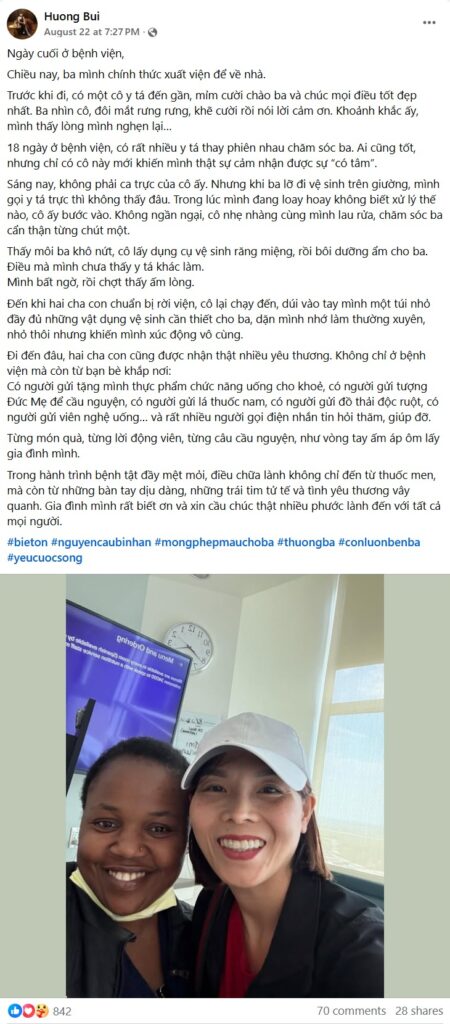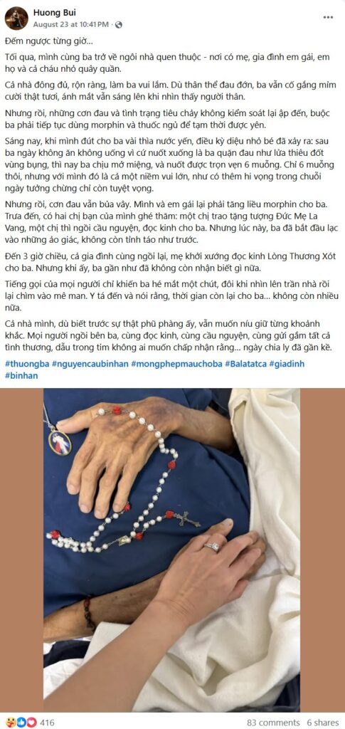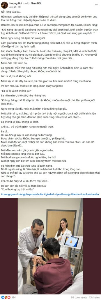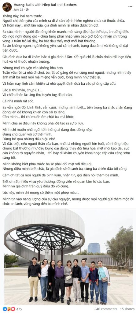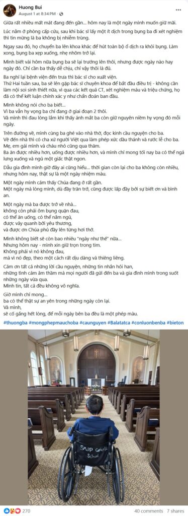 Do I know the people in the following story? No. I was on Facebook another day, somehow, one of her posts showed up. I read it. Then, I was eager to know more, so I read some more. Suddenly, it popped up in my mind that it should be shared on this website, so other Viet understands more about cancer… (VN, August 23, 2025, 12:30 pm)